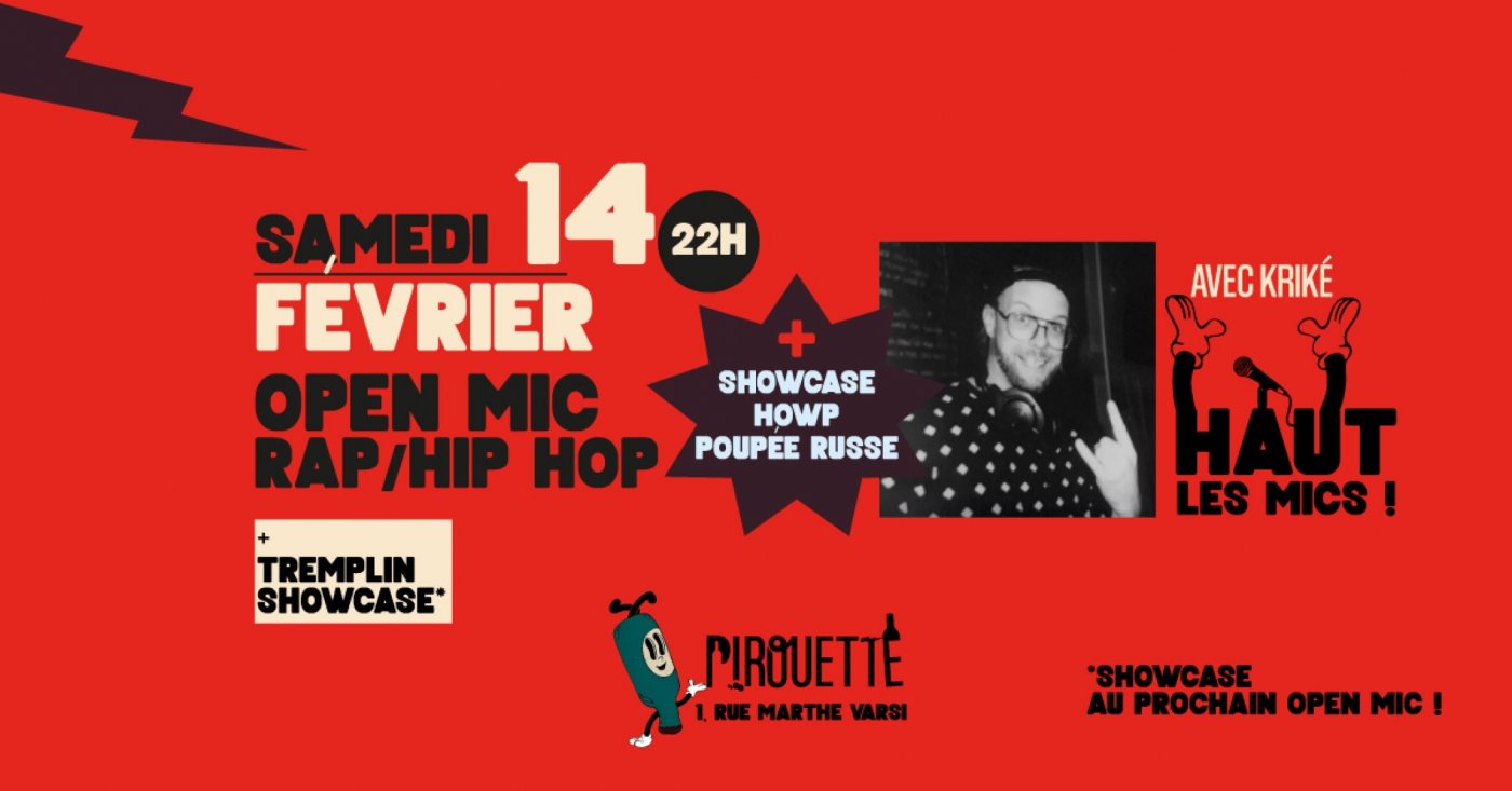 Tu viens, tu participes à l’open mic et si tu veux tu peux être tiré.e au sort pour faire un showcase à Pirouette en mars ( lors du prochain open mic)