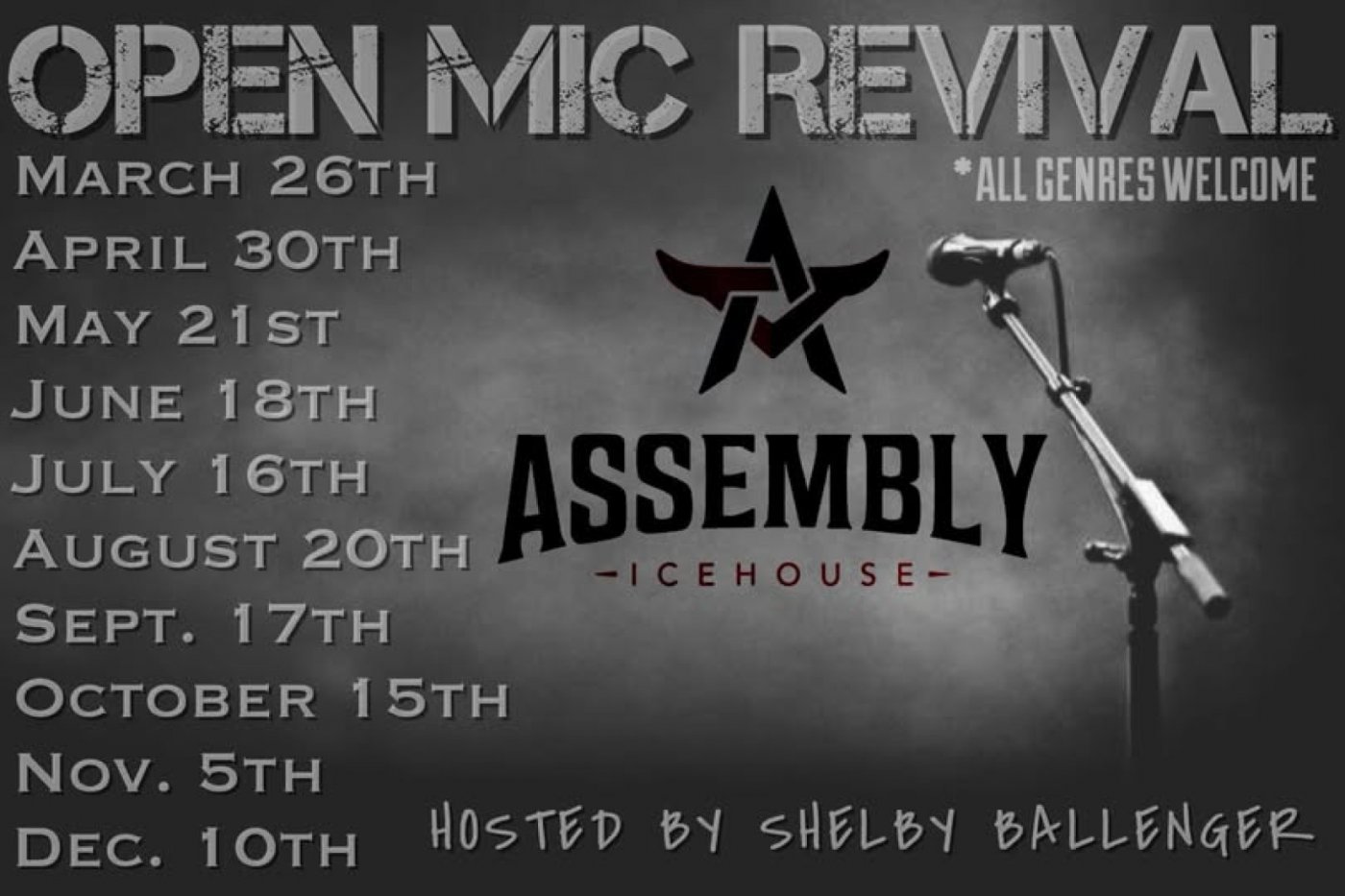 Starting on March 26, 2026 at Assembly Icehouse in Plano you can participate in our Open Mic Revival. All genres are welcome. The evenings are hosted by Shelby Ballenger.