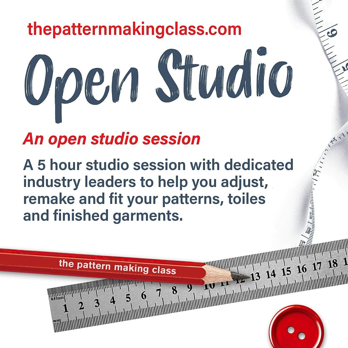 A 5 hour studio event with dedicated industry leaders to help you adjust, remake and fit your patterns, toiles and finished garments.About this Event