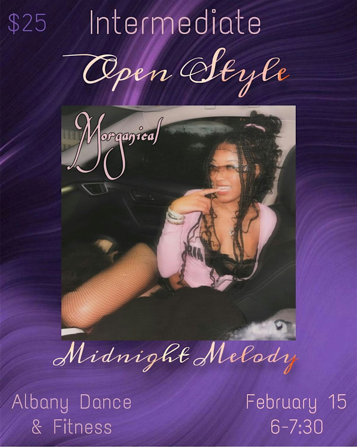 Get ready to groove in our open style dance workshop! We're mixing the best of hip hop with sultry vibes, all set to the smooth sounds of "Midnight Melody" by the amazing local artist, Morganical. Whether you're a seasoned dancer or just looking to have some fun, this workshop is for you. Come ready to explore your own style and connect with the music in a whole new way. Let's dance the night away!
