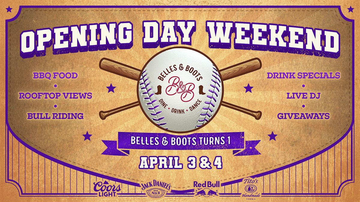 Celebrate Opening Day Weekend and one year of Belles & Boots with a two-day party you don’t want to miss! Join us April 3 & 4 as we kick off baseball season in true B&B style with BBQ favorites, rooftop views, bull riding, drink specials, a live DJ, and exciting giveaways all weekend long.