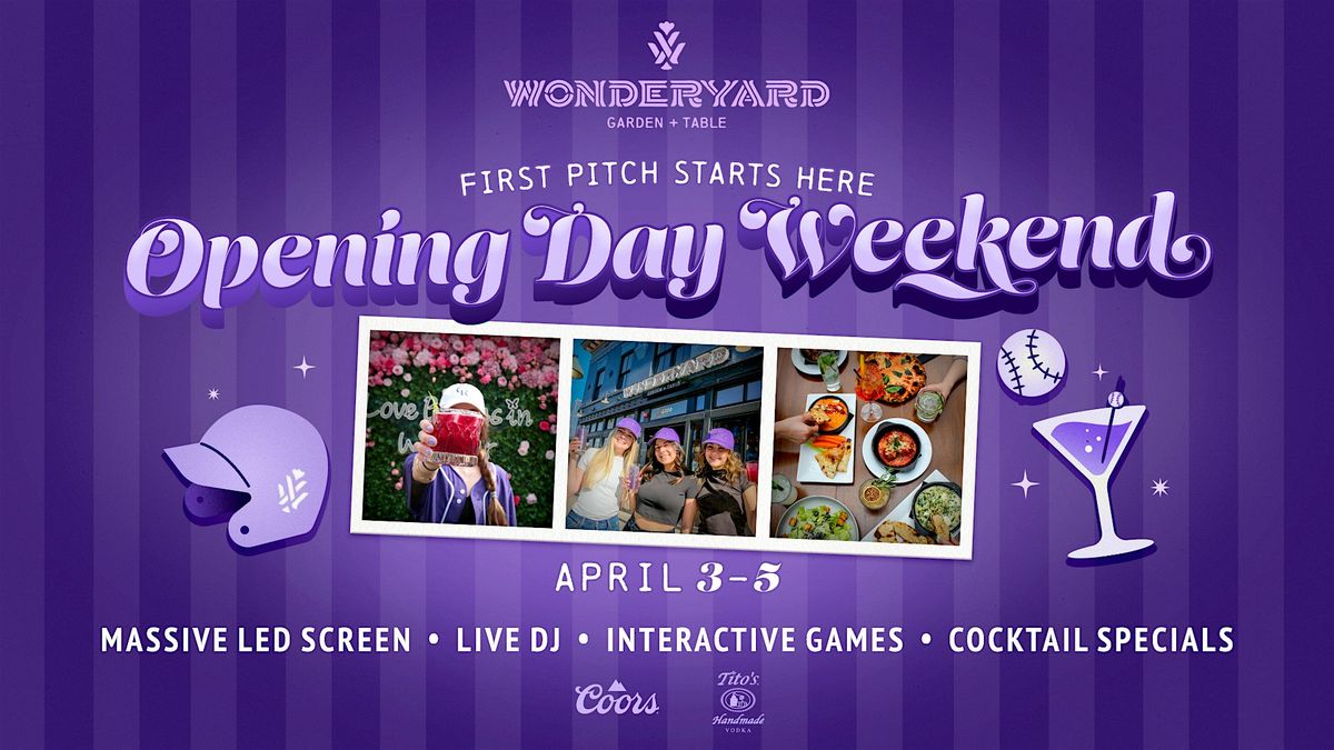Baseball season is back, and Opening Day Weekend at Wonderyard is where the celebration starts. Join us April 3–5 for a full weekend of game-day energy, drinks, and entertainment in the garden.