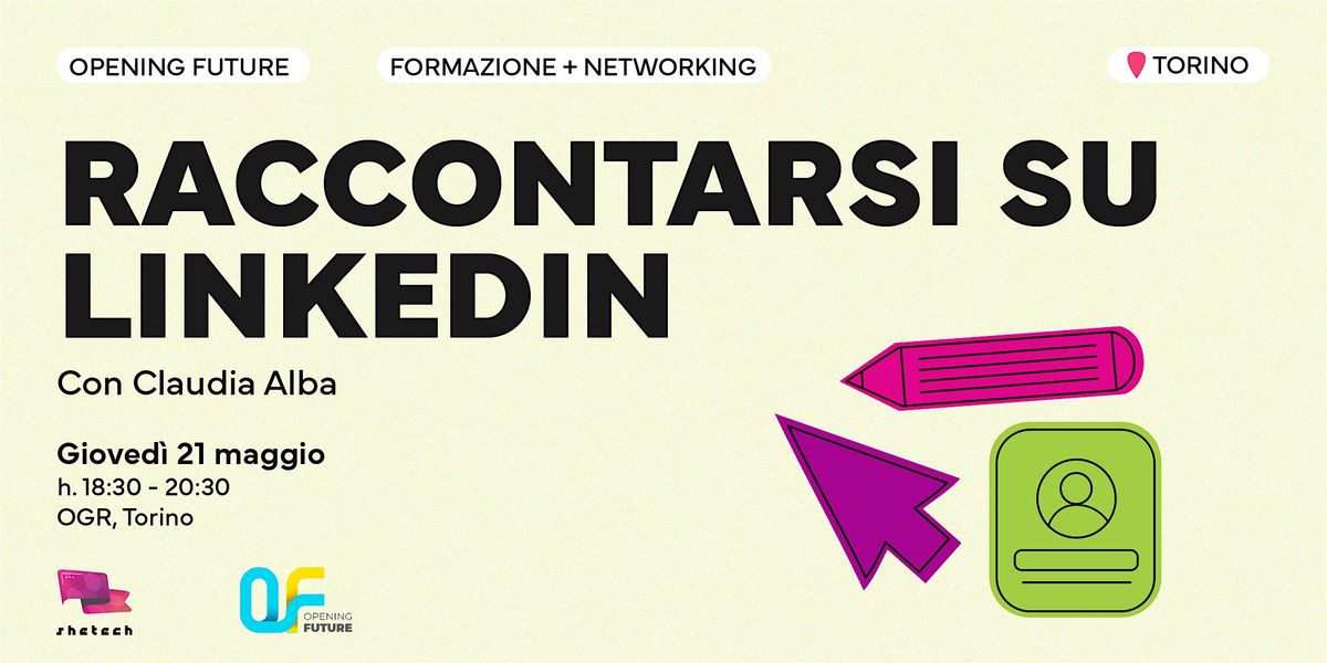 Ci vediamo giovedì 21 maggio dalle ore 18:30 - 20:30 presso OGR Torino con Claudia Alba, per il corso Opening Future - Raccontarsi su LinkedIn 📝