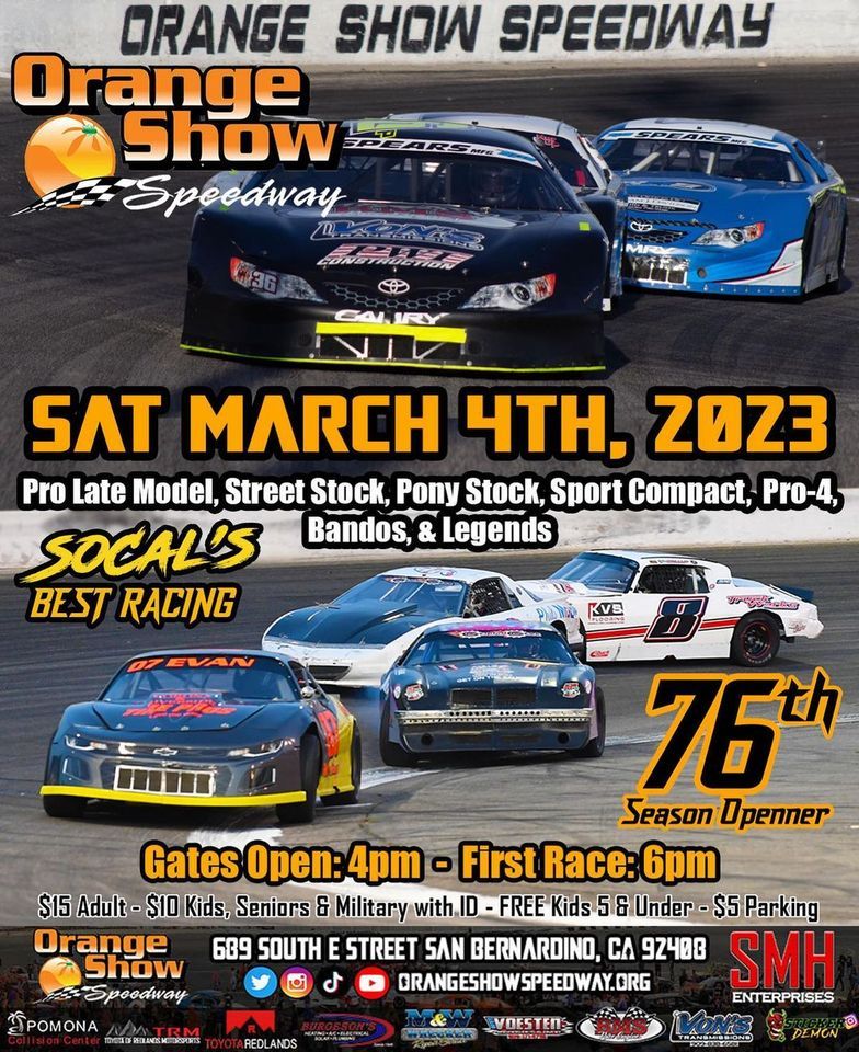Join us for the 76th opening night at Orangeshow Speedway. It promises to be an action packed night! Click the link to buy tickets now.