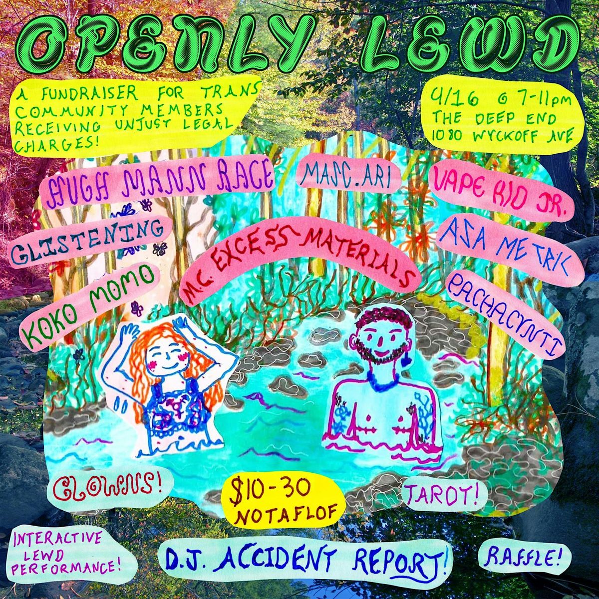 “Openly Lewd” : a fundraiser for trans community members receiving unjust legal charges. April 16 at The Deep End 7-11