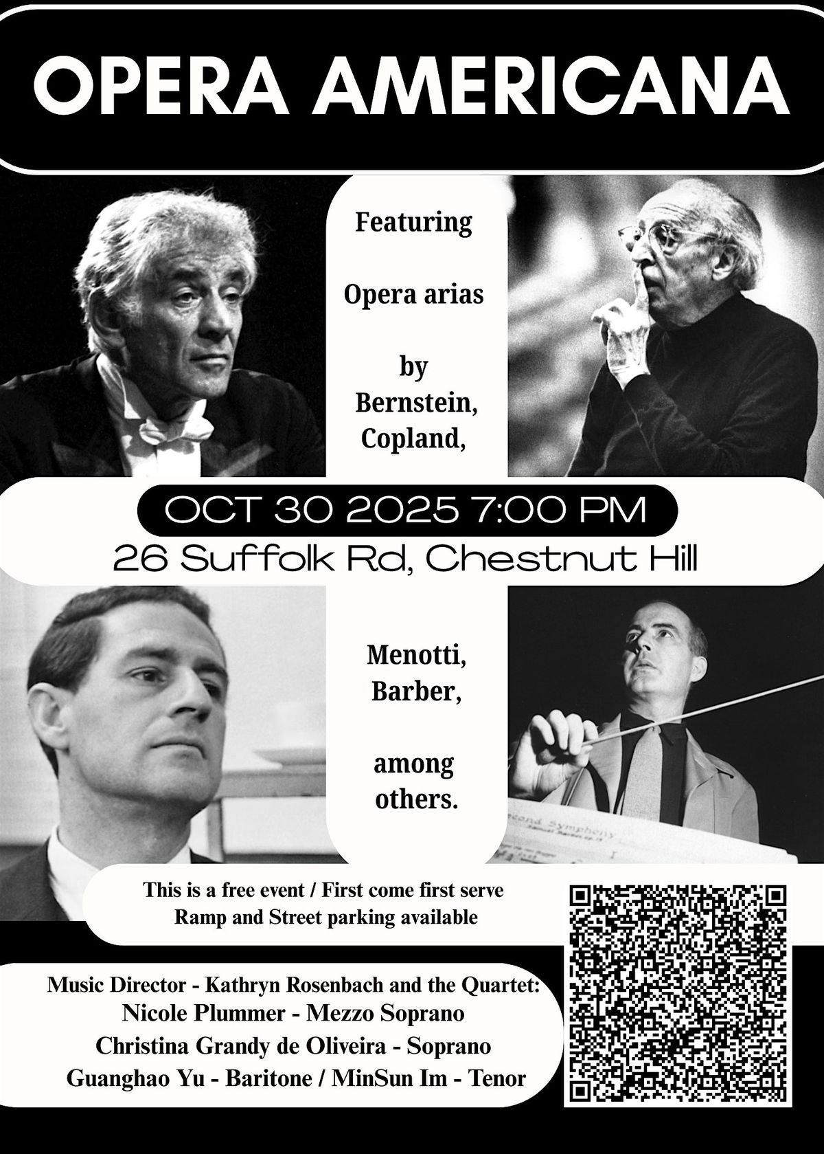 Come join us for a night of arias featuring Barber, Bernstein, Copland, Menotti, and more!