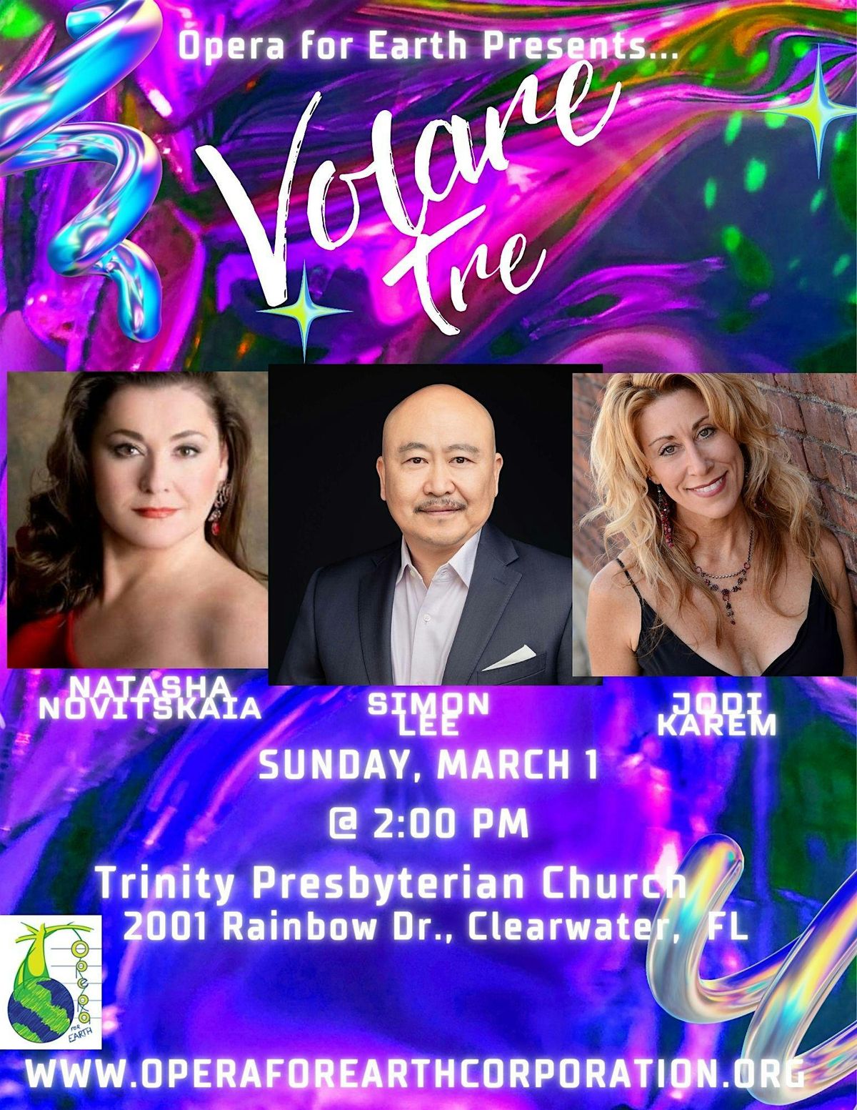 Get ready for an unforgettable in-person experience with Opera for Earth! Volare Tre! promises to take you on a soaring journey through breathtaking music and compelling stories. Gather your friends, dress up, and immerse yourself in an evening filled with passion, drama, and incredible voices. Donβt miss out on this unique live eventβcome see Volare Tre! and let the opera take flight!