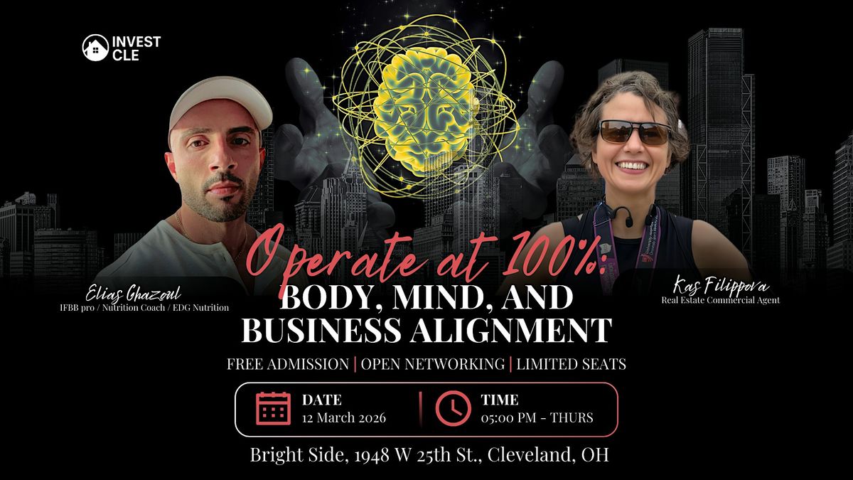 Title: Operate at 100%: Body, Mind, and Business AliLearn how to align body, mind, and business for peak performance. Join Invest CLE March 12 for expert insights and networking in Cleveland.gnment