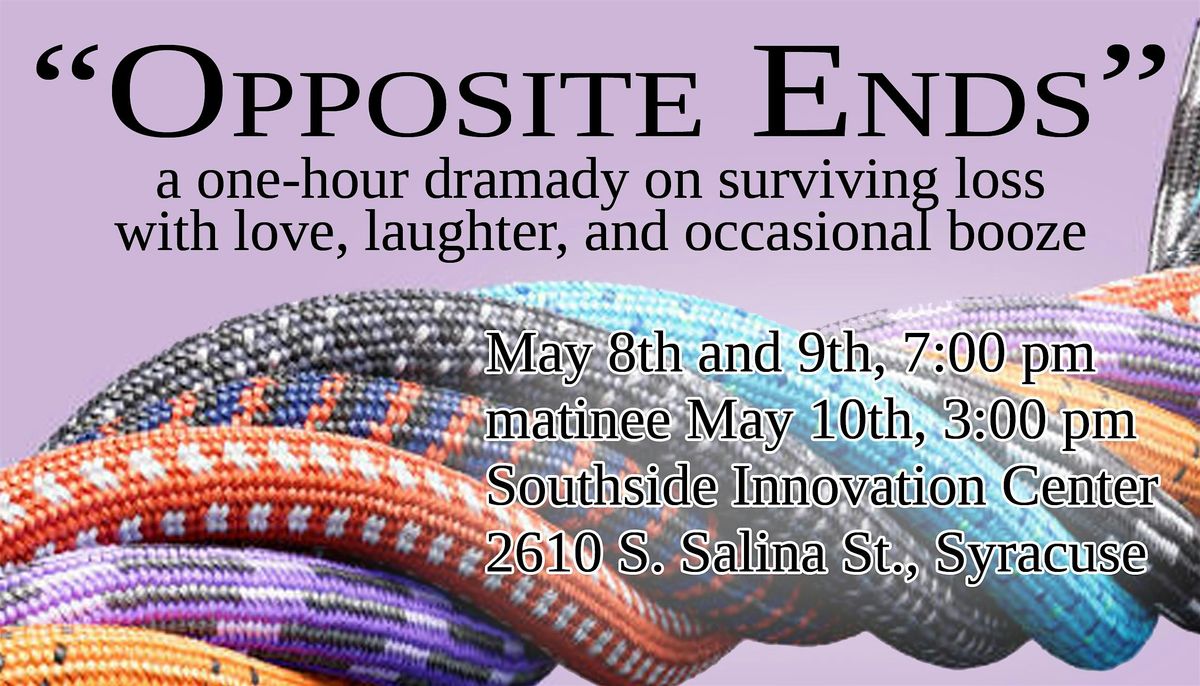 This event includes two short plays featuring stories of love, loss and occasional booze. Enjoy humor and a guide to dealing with messy emotions, overwhelming feelings of stress and staying on this crazy wheel of life. Author Diane Bostick moved through the loss of her artist brother, who died by suicide, by developing his art into framed pieces and coloring books. Her short one-act, "Opposite Ends", uses stand-up comedy and facts from police reports, weaving a surprising twist to the process of loss. The short play "Four Places" (performed by Emily Gilmore and Wendy Volpe), shows how two people change each others' lives during the course of a wellness visit from a healthare organization. A few storytellers will share their mini dramedies. A talk back session will allow the audience to share their thoughts and question the actors' experiences. Sales of art and coloring books will benefit the organization Hope for The Bereaved in Syracuse.