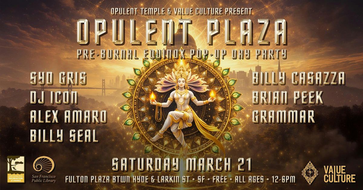 Experience an afternoon of Opulent Temple DJ sets, community energy, and open-air dancing as music lovers, creatives, and friends come together for a unique city celebration on the vernal equinox, the start of spring with the back drop of San Francisco's City Hall.