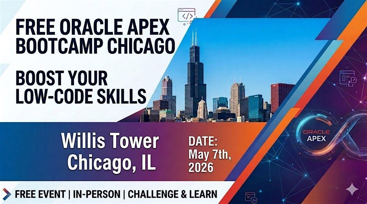 Ready to dive into Oracle APEX? Doesn't matter if you're an Oracle DBA, a data analyst, applied scientist, or a cloud architect. Join us in person in Chicago for an awesome introductory bootcamp. Whether you're a beginner or looking to sharpen your skills, this event is perfect for hands-on learning, networking, and getting real-world tips.
