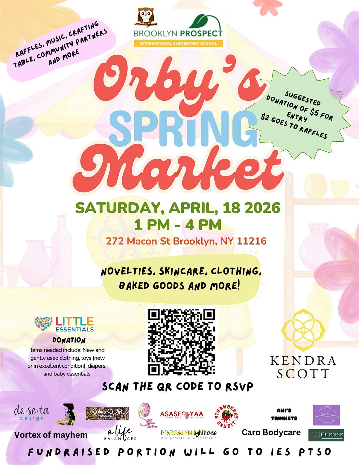 Join us April 18, 2026 from 1-4pm for our inaugural Orby's Spring Market. Shop unique finds from IES and CHMS small business owners including: