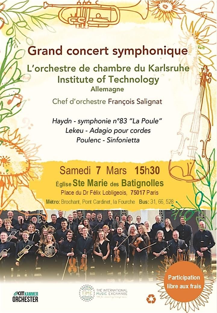 Un concert d'exception, présenté par les 50 musiciens de l'orchestre du Karlsruhe Institute of Technology, chef d'orchestre François Salignat.