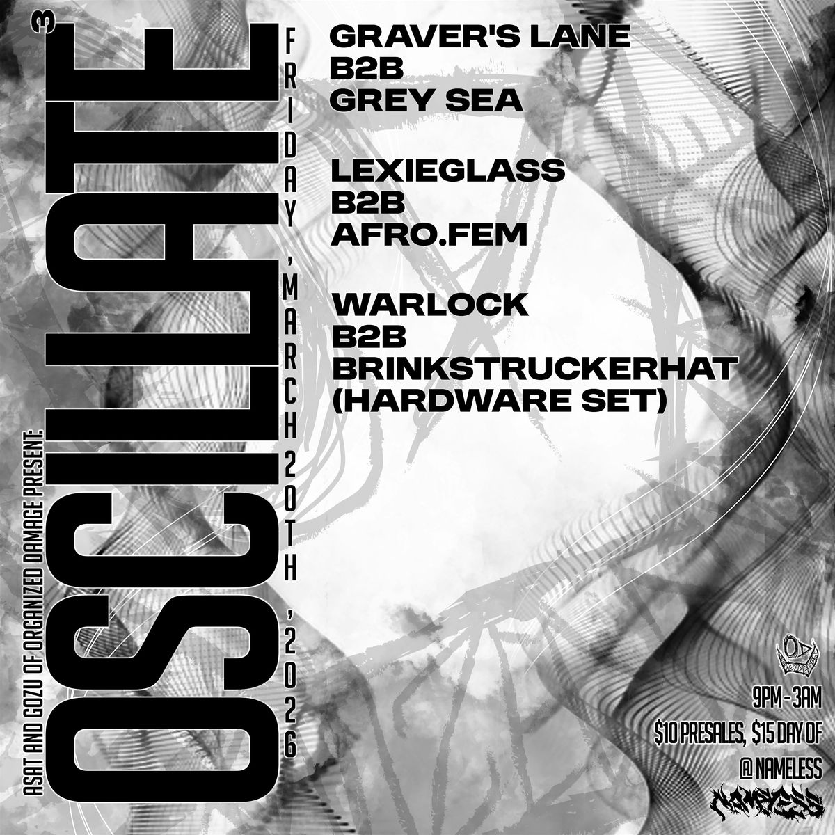 We got another one for ya Philly. Oscillate 3! At Nameless on Friday, March 20, 2026 from 9pm-3am