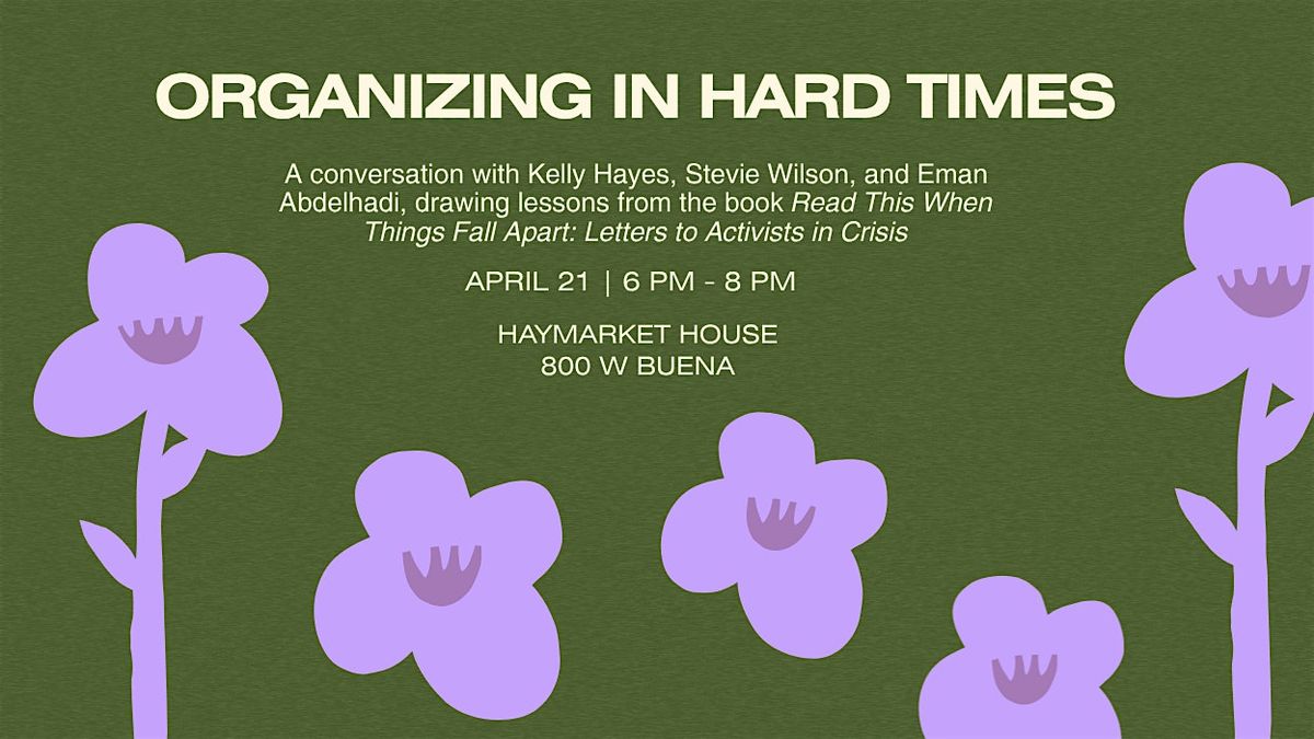 Join Kelly Hayes, Stevie Wilson, and Eman Abdelhadi at Haymarket House on April 22 at 6 pm for a conversation about Read This When Things Fall Apart: Letters to Organizers in Crisis.