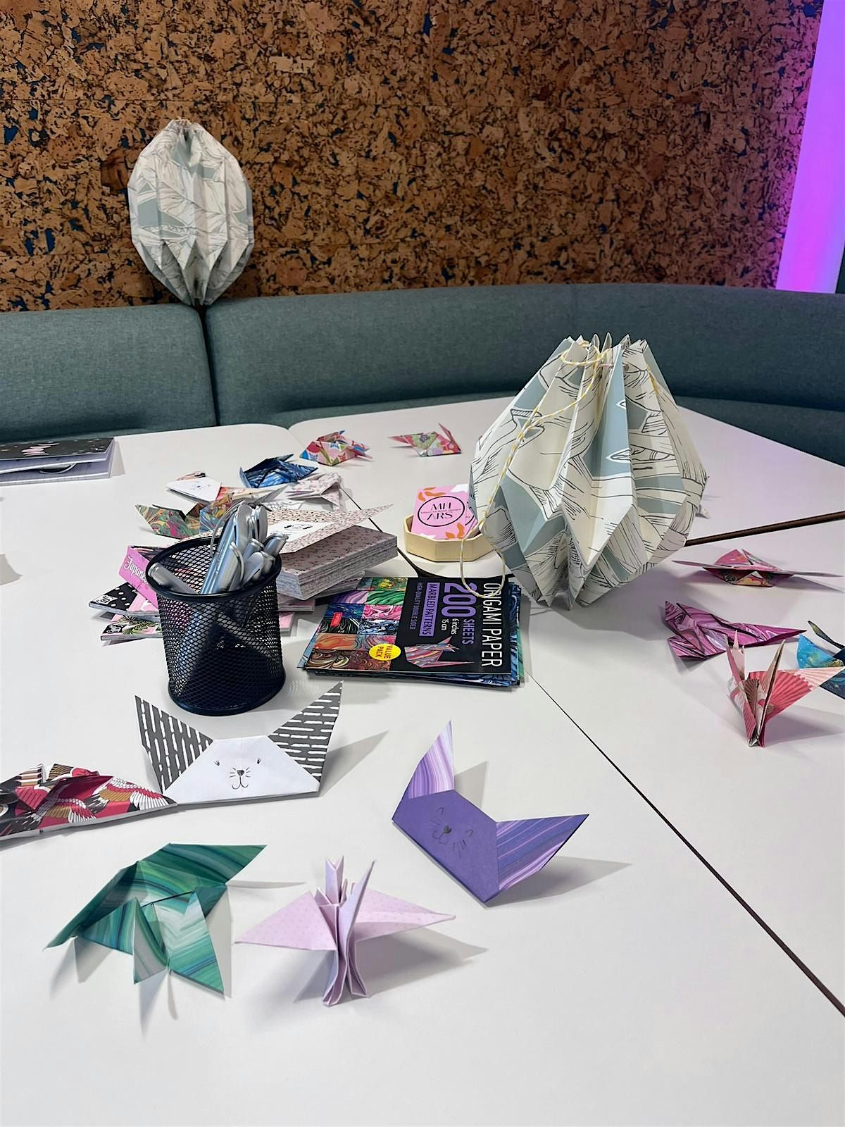 In this relaxed and mindful workshop, we will be covering basic repetitive origami folds and shapes such as cranes, butterflies and fish while using a wide range of traditional origami papers and normal paper.