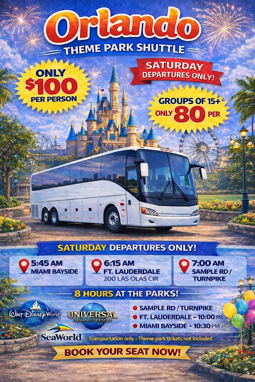 Orlando Theme Park Shuttle | Round Trip from Miami Bayside