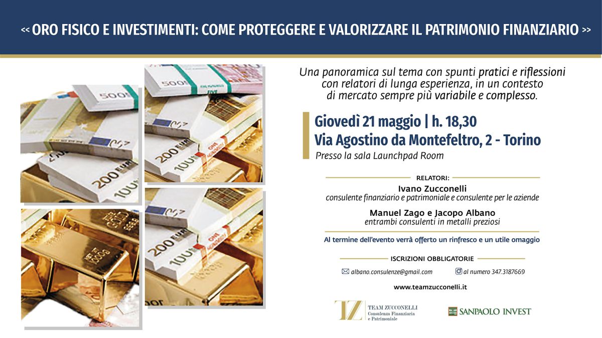 Per questo nasce questo evento e insieme a relatori di lunga esperienza, analizzeremo il ruolo dell’oro fisico e degli investimenti finanziari all’interno di una strategia finanziaria, tra opportunità, funzione di protezione e riflessioni utili per leggere meglio lo scenario di mercato.