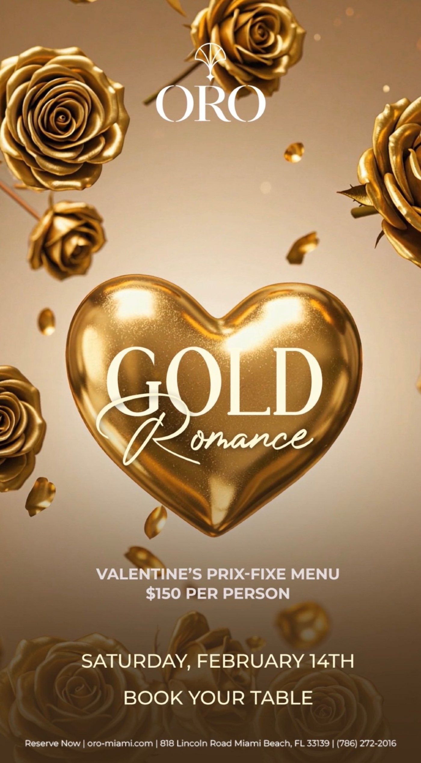 Miami Beach’s premier fine-dining destination, ORO, introduces “Gold Romance,” a Valentine’s Day prix-fixe experience designed for an elegant, indulgent evening. The menu opens with elevated bites such as cassava with scallion emulsion; and tuna nikkei with aji amarillo tiger milk, Asian pear, and quinoa crunch; followed by smoked mushroom potstickers finished with truffle ponzu. Entrée selections include entrecôte au poivre with a gochugaru rub and charred broccolini; or grouper sake beurre blanc served with bok choy and pickled pearl onion. Desserts bring a romantic close with the chocolate brownie-forward Bella Rose or Forbidden Fruit, featuring yogurt ricotta mousse and sour apple.