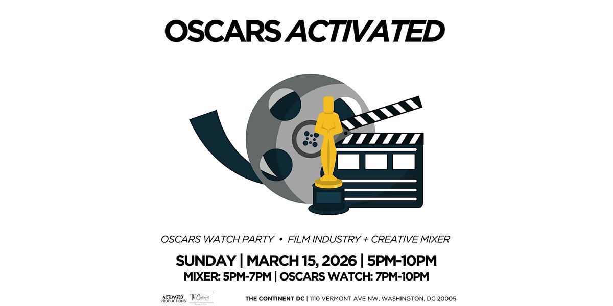 RSVP and join ACTIVATED PRODUCTIONS Sunday March 15 at The Continent DC for OSCARS ACTIVATED, a night celebrating film, creativity, and culture. This event brings together filmmakers, actors, creatives, and film lovers for a mixer followed by a live watch of the Academy Awards.
