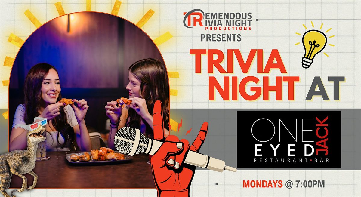 Tremendous Trivia is bringing our 6 rounds of Trivia and Name That Tune to One Eyed Jack! Bring YOUR team down for 2 hours of fun and prizes each month as we challenge you on tons of awesome trivia knowledge!