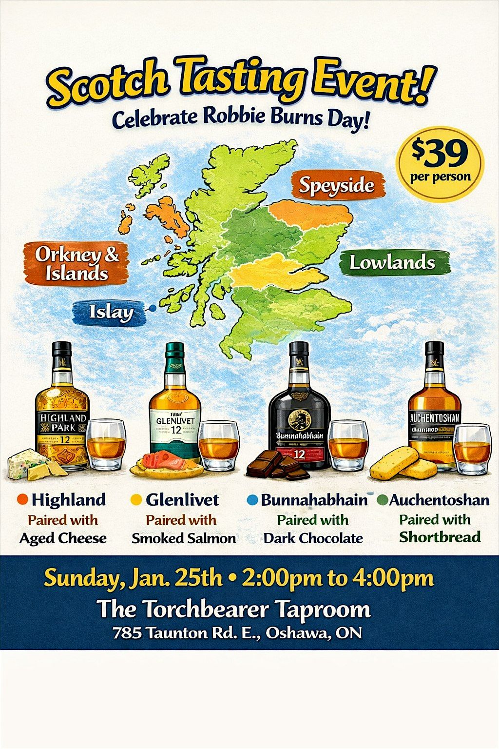 Join us for a relaxed and guided afternoon Scotch tasting celebrating Robbie Burns Day at The Torchbearer Taproom. This event is designed for both Scotch newcomers and enthusiasts alike, offering a fun, approachable way to explore Scotland’s whisky regions.