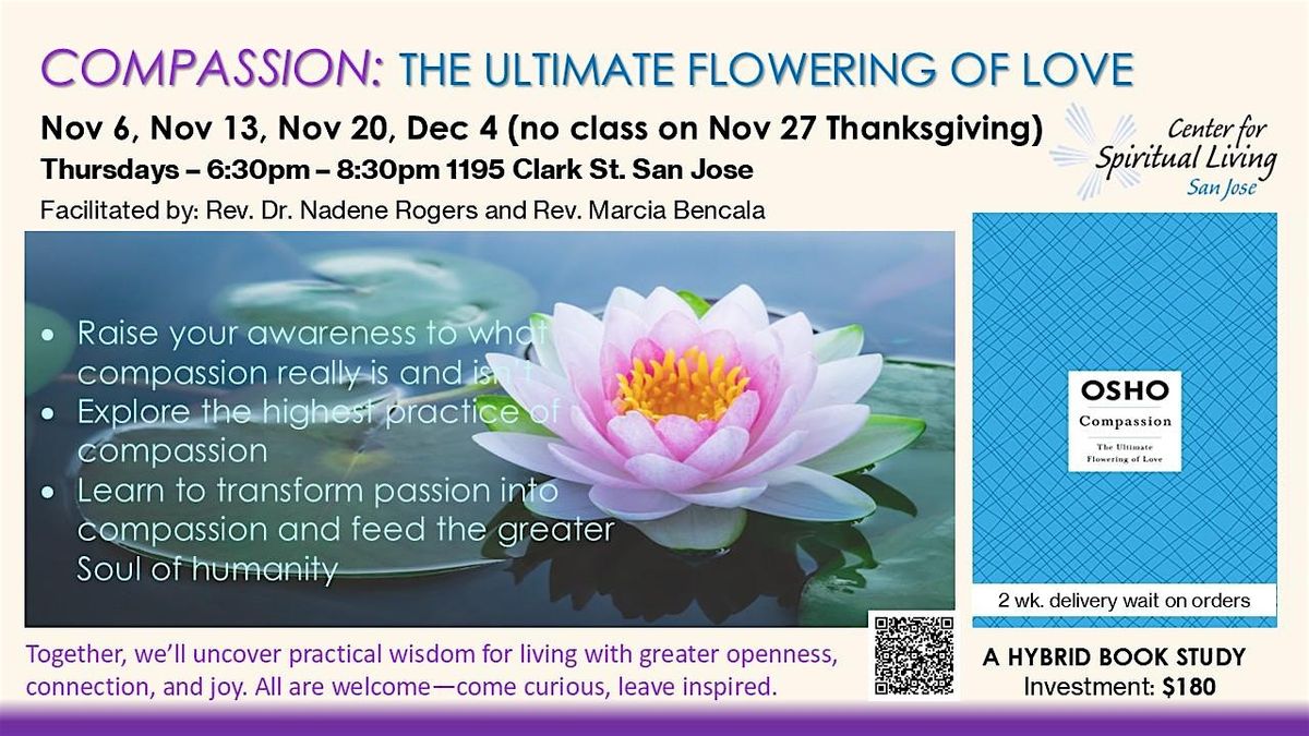 REQUIRED BOOK: "Compassion: The Ultimate Flowering of Love" by Osho (order from Amazon by October 23rd to receive in time for the class).