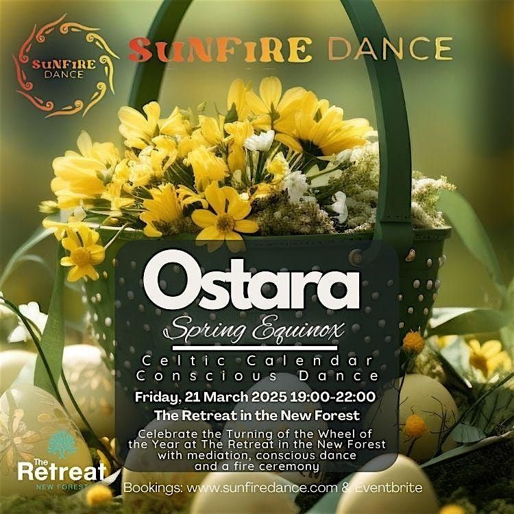 Join SunFire Dance at The Retreat to celebrate the turning of the wheel at our Celtic Calendar Conscious Dance, Ostara, on Saturday ,21 March, where we will meditate on the significance of this festival and season in our lives, dance as wildly or mildly as you wish to an eclectic mix of music and gather around the fire for a ceremony. release, poetry and song.