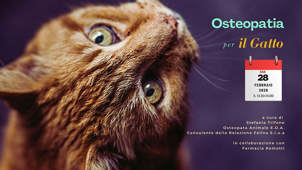 INCONTRI SULL’OSTEOPATIA PER IL GATTO.Un incontro dedicato alla scoperta dell’etologia, dell’Osteopatia e della Medicina Integrata a sosteg