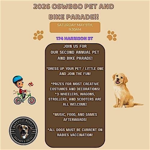 Join the fun at Oswego's Second Annual Pet and Bike Parade—pets, bikes, and good vibes all around!About this Event