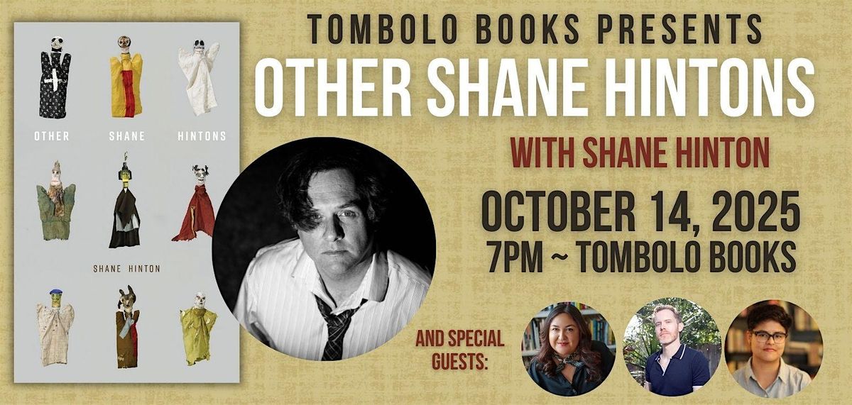 Tombolo Books is thrilled to welcome back local author Shane Hinton in his many variations to the bookstore! Hinton along with a cast of familiar faces will join us for a performance of Hinton's latest novel, Other Shane Hintons! Joining the author are special guests: