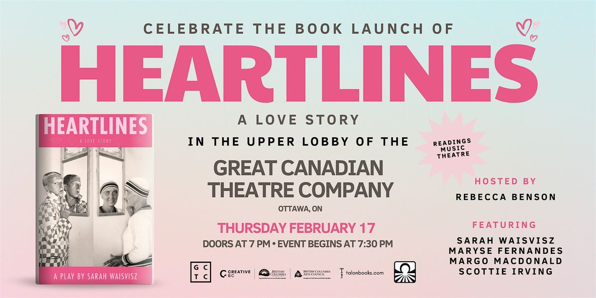 Attendance is free! A cash bar will be available on the premises. Book sales will be provided by the amazing team at Octopus Books. And not to spoil any surprises, we’ve heard rumours that there will be cake. Join us in the upper lobby of the Great Canadian Theatre company to welcome Heartlines to the world.