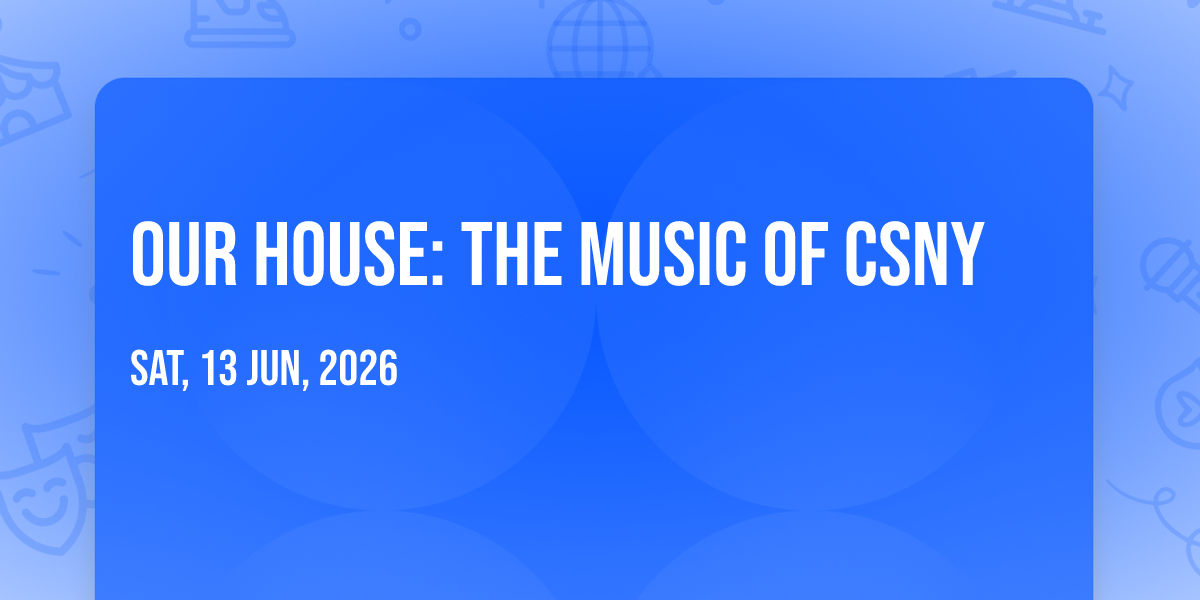 π Location: 39.7437, -75.5483β¨ Embark on an extraordinary journey at Our House: The Music of CSNY, where every moment promises to be unforgettable! π Imagine of transforming Grand Opera House - Wilmington in the heart of Wilmington, DE into a realm of endless possibilities. π Join us on June 13th, 2026 at 12:00 AM for an experience that will challenge your imagination and exceed your expectations. π― This carefully curated event combines the finest elements of entertainment, innovation, and community spirit. Whether you're an adventure seeker, culture enthusiast, or someone looking for unique experiences, this event offers something special for everyone. π Don't miss this chance to be part of something extraordinary!
