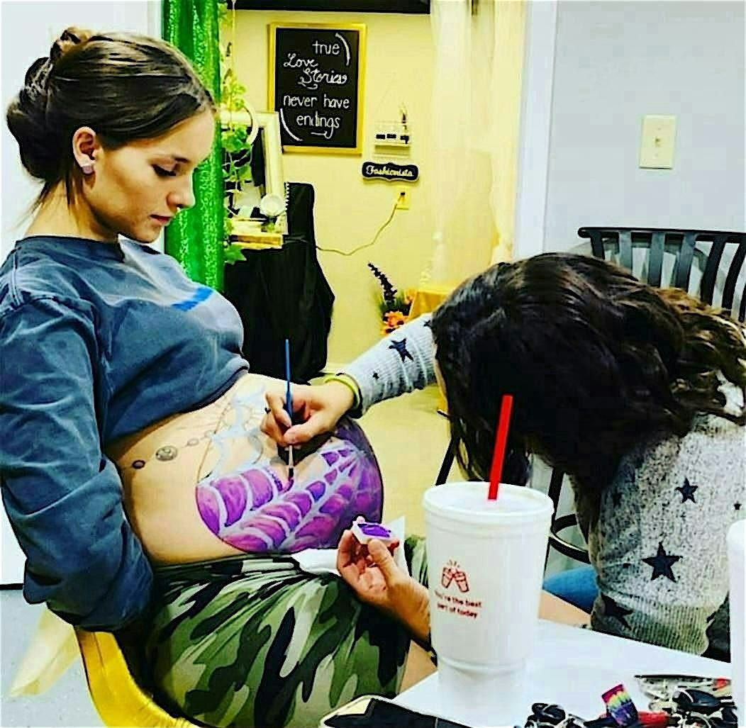 They’ve watched the baby bump grow...before Baby enters the world, let your loved ones share in this special journey by transforming your pregnant belly into a LIVING MASTERPIECE! Invite your crew to grow closer to your baby and feel them move & respond to the gentle touches of the paintbrush and the sounds of your voices!