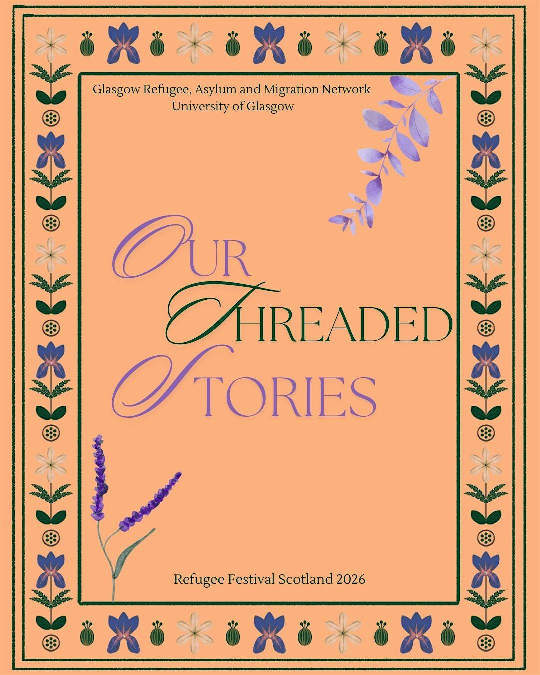 This collective journey and tapestry making workshop will begin in Kelvingrove Park to gather materials that represent home, belonging, hope, and change, or in some way reflect our rootedness to new and old landscapes. After creating our shared collection, we will move to the university to print our objects onto fabric. We will end our activity by stitching together our pieces of fabric into a tapestry that represents the connectedness of our stories.