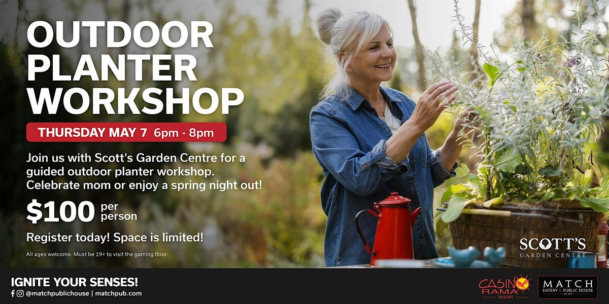 Welcome spring at Casino Rama Resorts Outdoor Planter Workshop with Scott's Garden Centre. Join us May 7th from 6pm-8pm on the Match Eatery & Public House Patio for a fun, hands-on workshop led by gardening experts.
