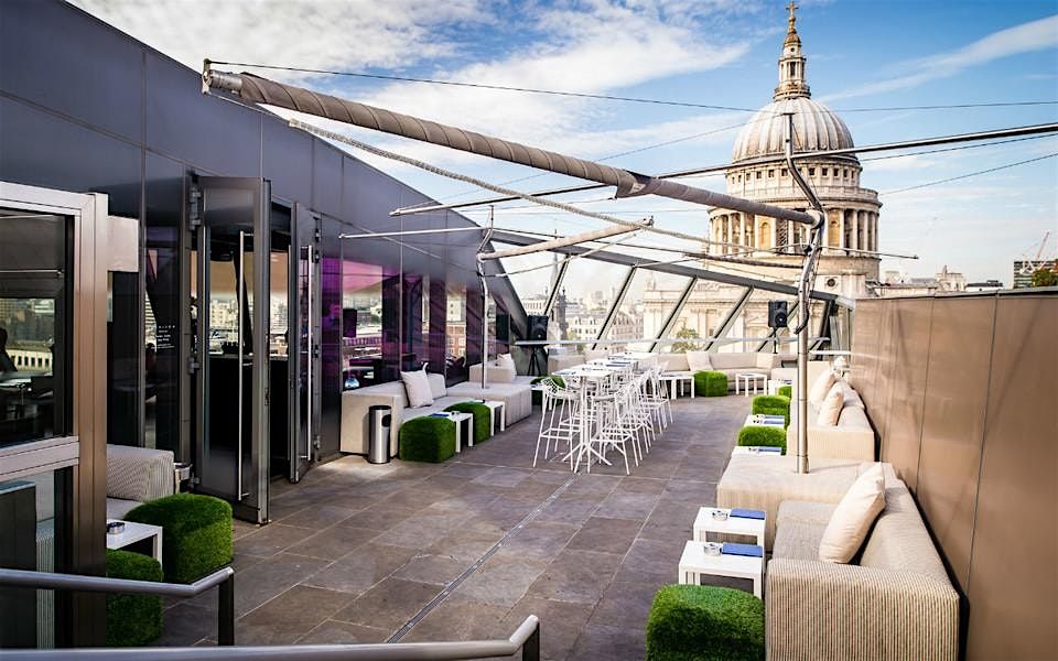 The event takes place on the outside terrace with spectacular views of St Paul's Cathedral and the London skyline. We have our own reserved area with private bar and seating. In the event of rain there will be cover and heaters if the weather turns.
