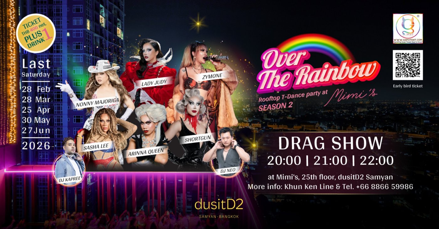 Get ready to elevate your Saturdays! Over the Rainbow Rooftop T-Dance Party Season 2 returns to Mimi’s Bangkok at dusitD2 Samyan. Join us every last Saturday of the month throughout 2026 for the ultimate sunset celebration.