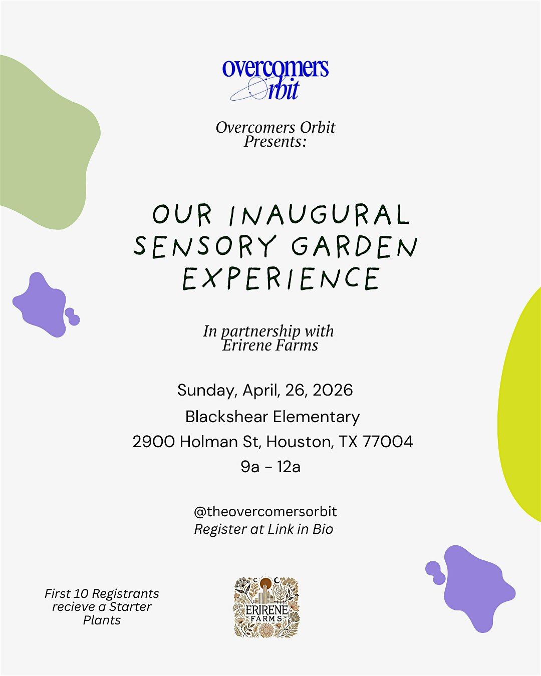 We’re excited to announce something special! Overcomers Orbit, in partnership with Erirene Farms, is proud to host our inaugural Sensory Gardening Experience at Blackshear Elementary School.