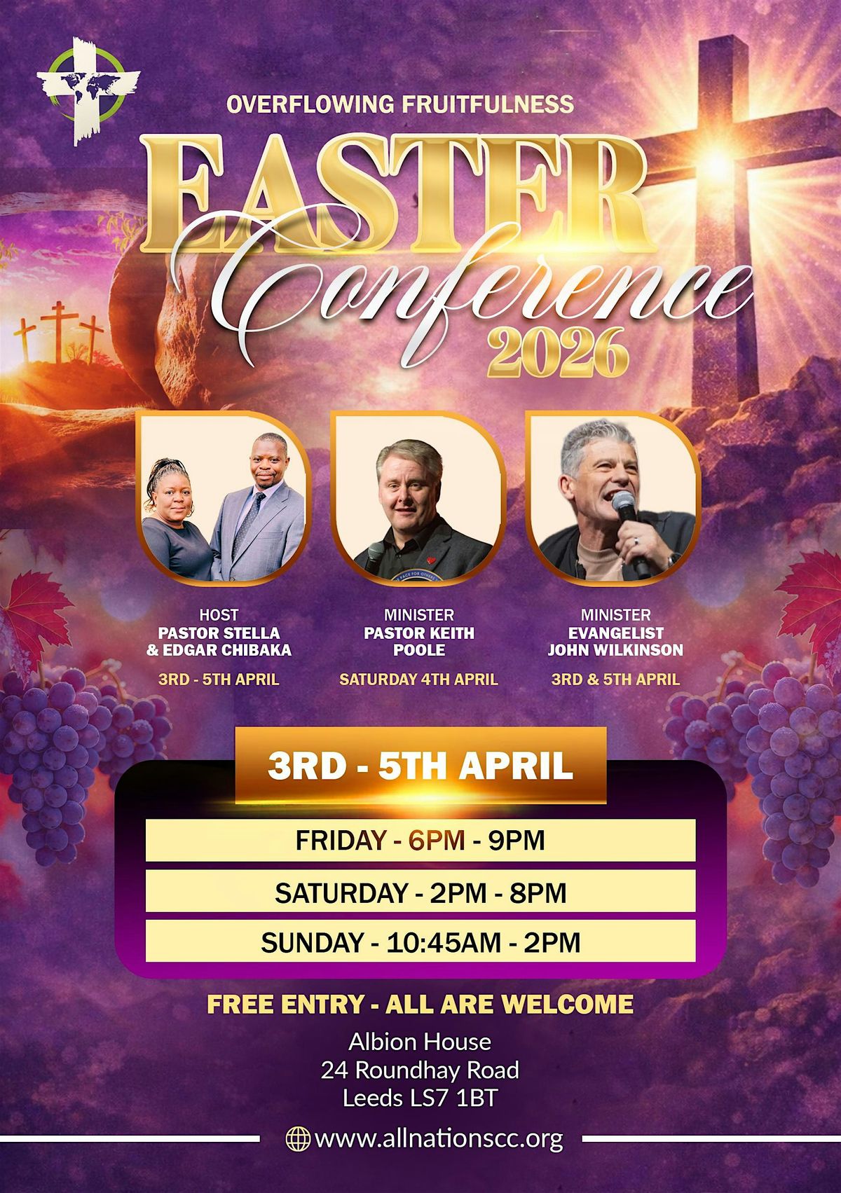 Overflowing Fruitfulness – Easter Conference 2026 is a dynamic 3-day gathering designed to ignite your faith, refresh your spirit, and position you for a season of abundance and spiritual growth.