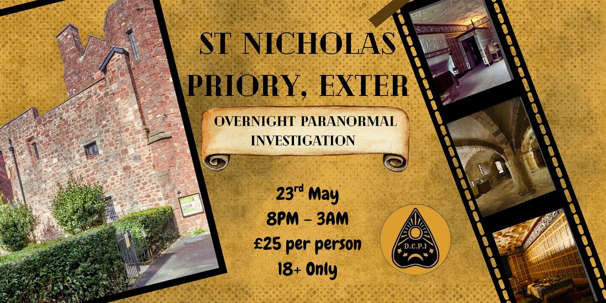 Join Devon and Cornwall Paranormal Investigations (D.C.P.I.) for a structured, evidence-focused overnight ghost hunt inside the historic St Nicholas Priory, Exeter.