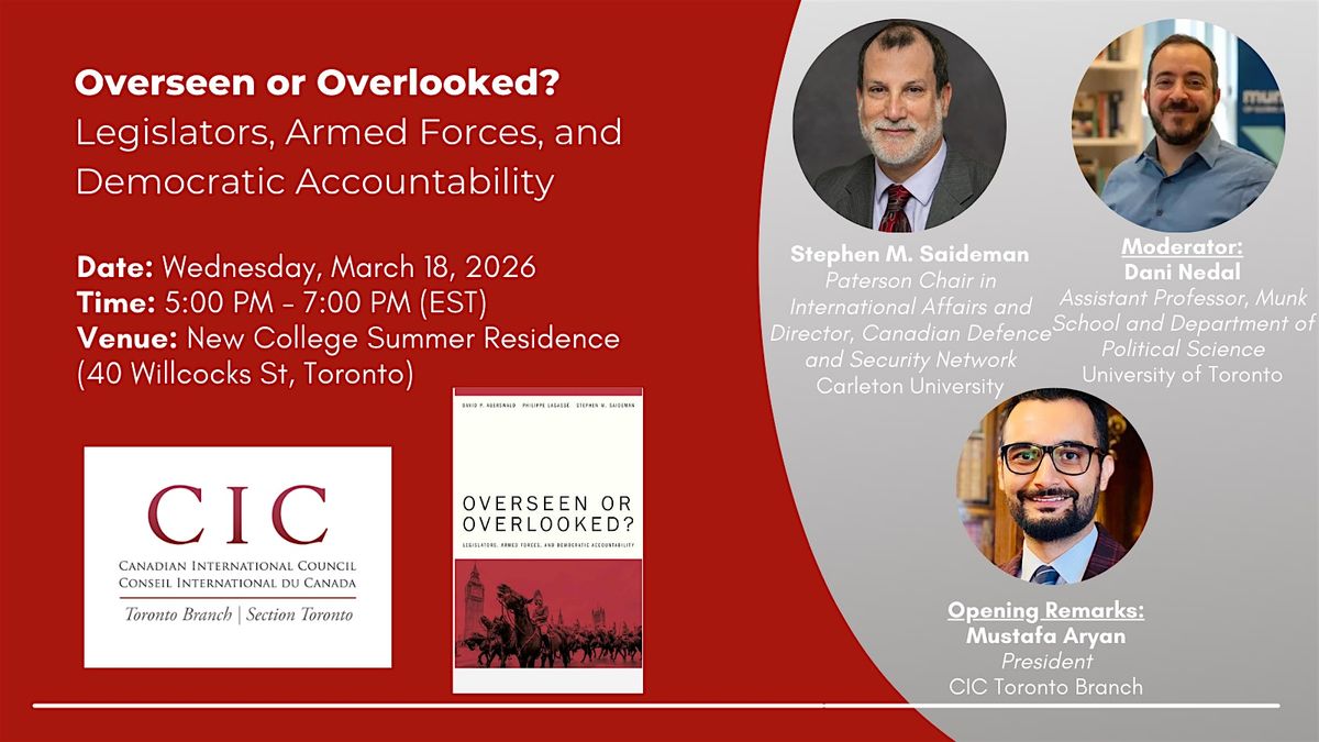 The Canadian International Council's Toronto Branch is delighted to invite you to attend a panel discussion on , a new and timely examination of democratic control of the military. Co-author Stephen M. Saideman joins Dani Nedal for an in-depth discussion of the book’s core arguments and findings.