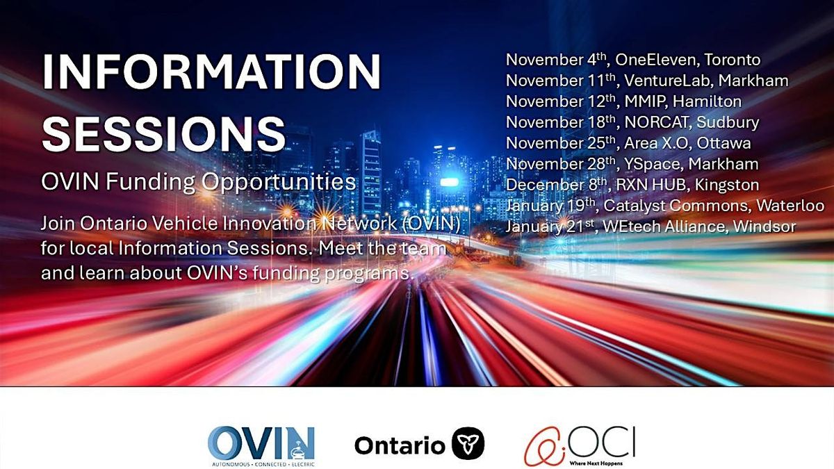 During this information session, you will get to learn about Ontario Centre of Innovation, Ontario Vehicle Innovation network, and the funding programs that both of them offer.