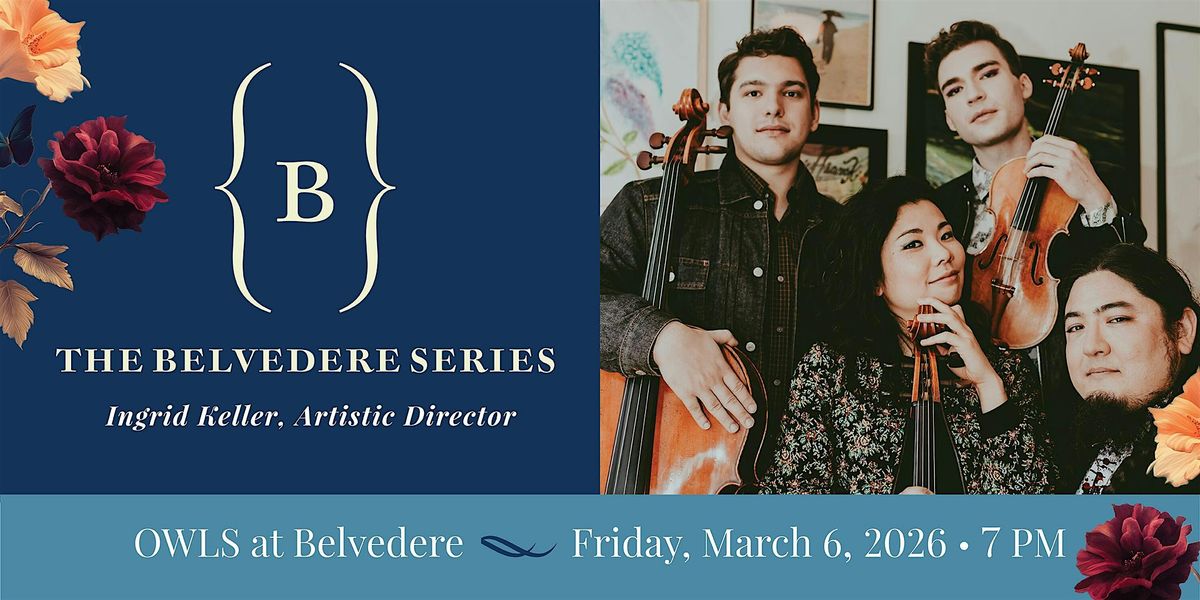 The Belvedere Series is thrilled to bring the innovative string quartet OWLS to Richmond. Known for their fierce, form-defying work, OWLS performs in an inverted string quartet with two cellos, a violin, and a viola. This quartet collective is highly sought-after for their fire and technical finesse. Expect an immersive experience and extraordinary music-making.