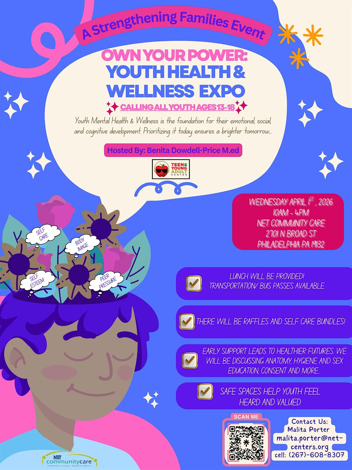 Join us at 2701 N Broad St on April 1, 2026 at 10:00 AM (Eastern Time) for a fun and inspiring day all about youth wellness! Connect with awesome people, learn cool tips for staying healthy, and discover ways to own your power. Whether you're curious about mental health, sex education, boosting self esteem or just want to hang out and get motivated, this expo has something for you. Don’t miss out on this chance to boost your well-being and have a great time!