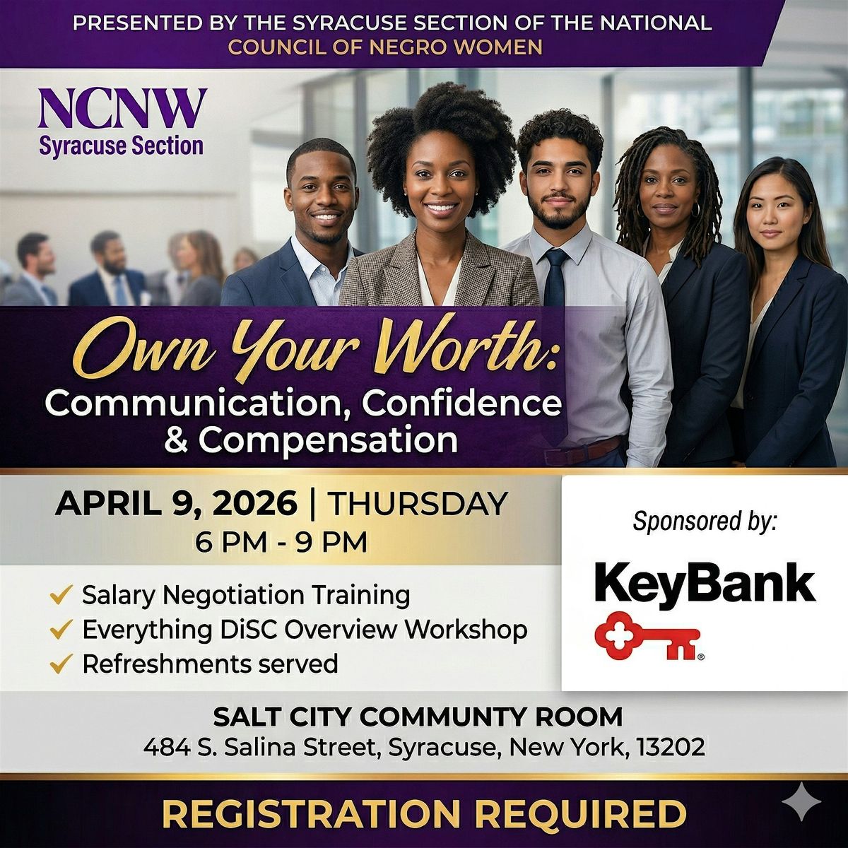 oin the Syracuse Section of the National Council of Negro Women for an empowering evening designed to help you show up with confidence, communicate effectively, and advocate for your value in today’s workplace.