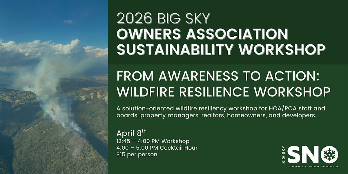 Join SNO, in partnership with Big Sky Fire Department & Alpenscapes, for a solution-oriented workshop and cocktail hour on protecting property for the future in Big Sky's changing climate.