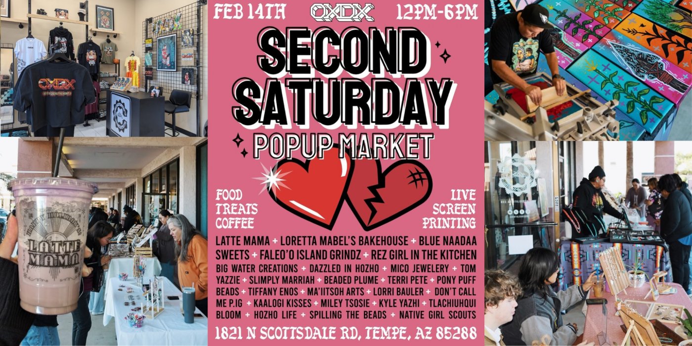 Make plans for Valentine's Day at the OXDX Second Saturday Popup Market featuring Native vendors, live screen printing, food, & more!
