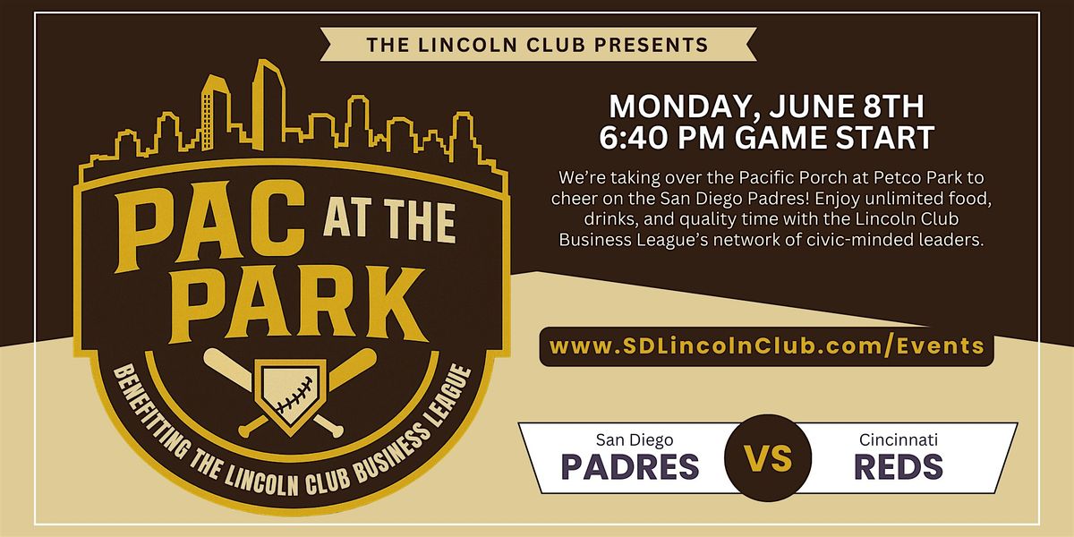 Join the Lincoln Club Business League for an unforgettable evening at PAC at the Park on Monday, June 8th at Petco Park! We’re taking over the Pacific Porch to cheer on the San Diego Padres as they take on the Cincinnati Reds, with gates at 5:10 PM the first pitch at 6:40 PM.