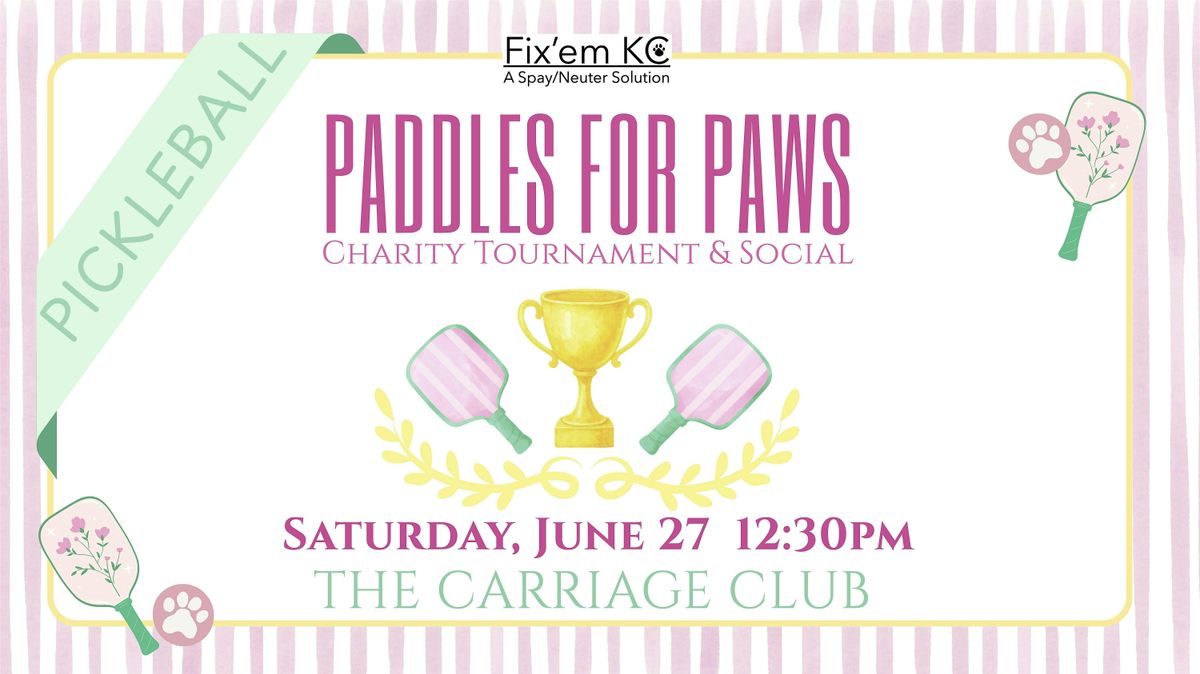 Join us at The Carriage Club on June 27, 2026 at 12:30 pm for a fun-filled afternoon supporting Fix'em KC. Whether you're a pickle pro, new to the game, or just want a casual afernoon with friends, this tournament and social event is perfect for everyone. Meet fellow animal lovers, enjoy light competition, a snack and beverage, and help make KC a safer and more humane city. All proceeds will go toward helping Kansas City families pay to spay or neuter their pets.